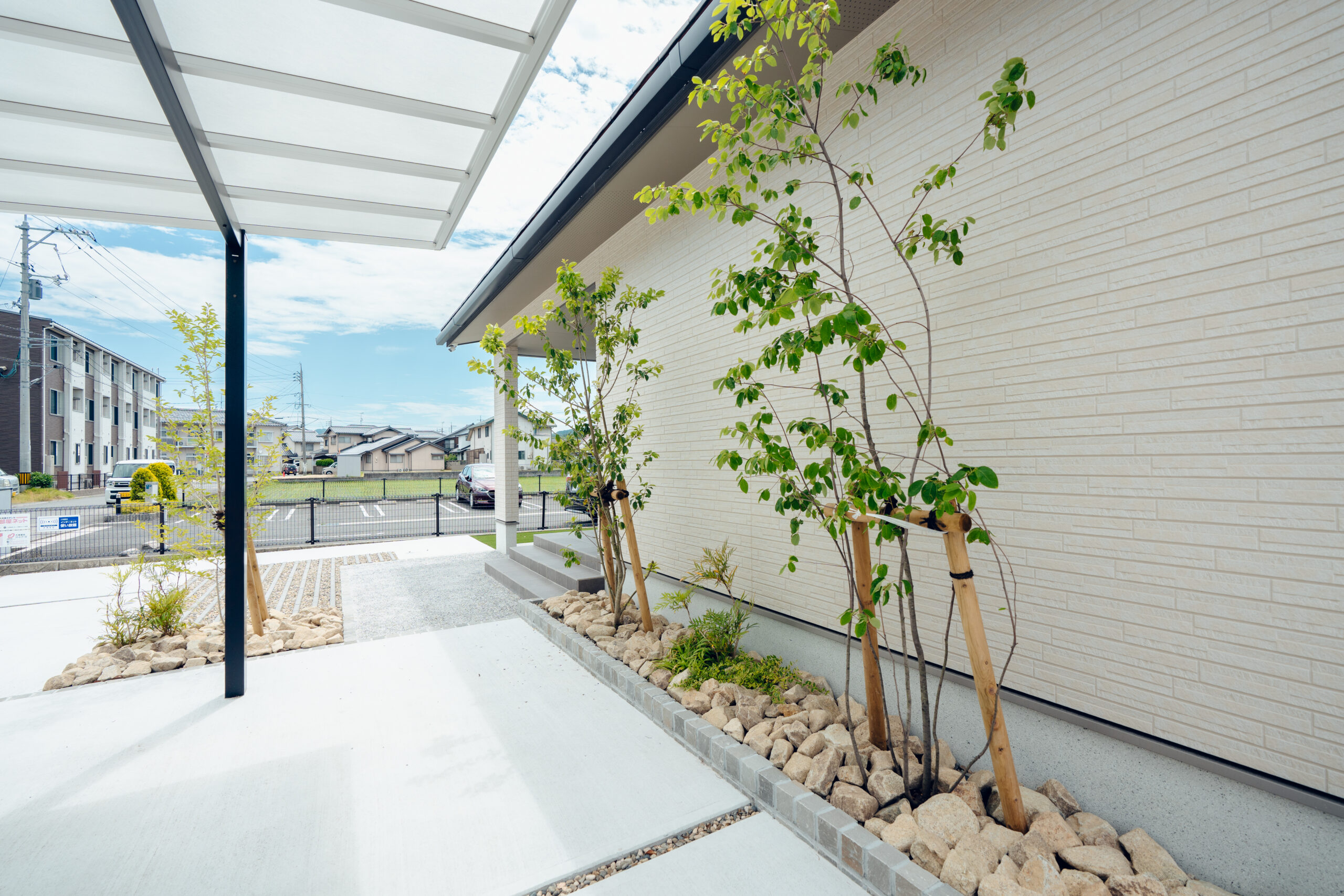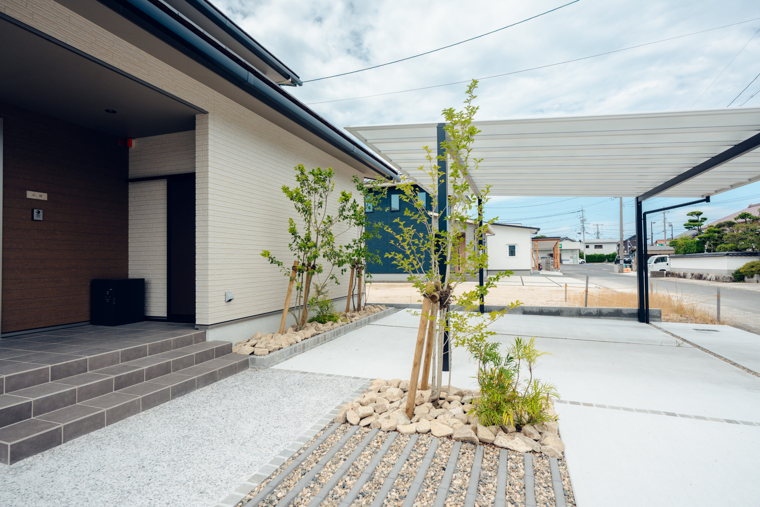 機能性と美しさの両立 2026 1/22 WORKS ALL / NEW CONSTRUCTION / アプローチ カーポート フェンス ライトアップ 人工芝 植栽 駐車場 モダンな佇まいの中に自然の温もりを感じられる空間 玄関までのアプローチには石や砂利を織り交ぜ足を進めるたびに表情が変わる景色を演出。駐車スペースにはゆとりを持たせ日々の使いやすさにも配慮しています。カーポートで住まいに“洗練された雰囲気”をプラス。「車を停める場所」から「暮らしの質を高める空間」へ。緑が映える外観は、四季折々に彩りを変え帰宅のたびに心を癒してくれる存在に☆彡 一覧へ戻る その他の施工事例 手入れ少なく緑と暮らす庭 シックで落ち着いた色を使った外構 グレーとブラックの色合いでスタイリッシュな外構 木目×自然石のエントランス ガレージのある暮らし “管理のしやすさ”と“長く愛せる美しさ”を両立させたデザイン 一覧へ戻る WORKS ALL / NEW CONSTRUCTION / アプローチ カーポート フェンス ライトアップ 人工芝 植栽 駐車場